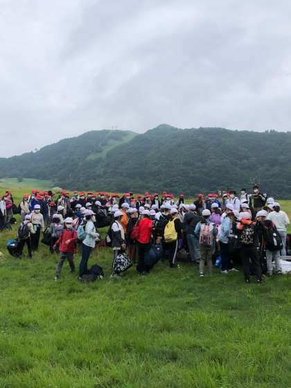 ハチ高原に到着しました。天候は曇り、気温は22度です。これから本格的に林間学習がスタートします。