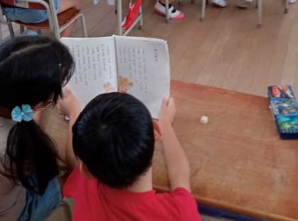 隣の席の友達とペアになって「かいがら」の音読をしました。