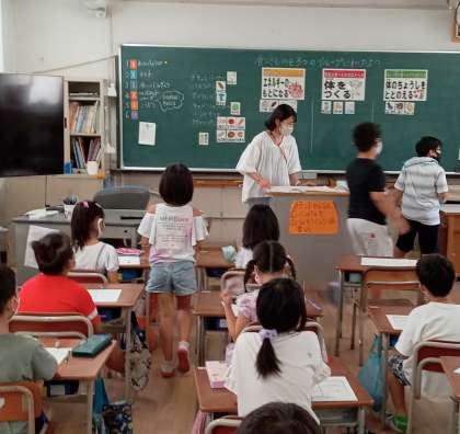 東井高野小学校から栄養教諭の先生に来てもらい、授業を受けました。