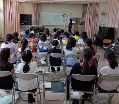 クラスみんなで合唱をします。どんなことに気をつけて歌えばいいかを確かめました。