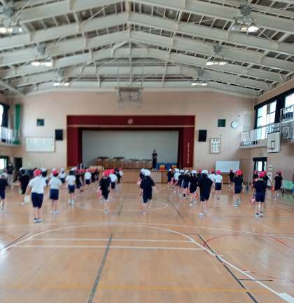 団体演技の練習をしています。みんなの動きがそろってきました。