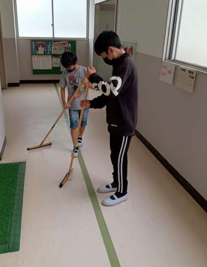 それぞれのクラスの当番が、自分の分担場所を掃除します。