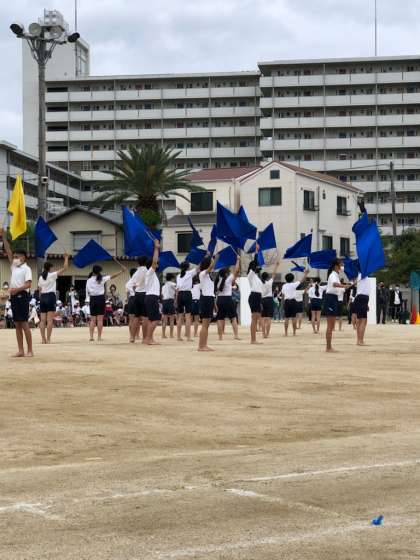 今年最後の運動会。6年生にとっては小学校生活最後の運動会。バランス感覚を養う運動と、一糸乱れぬフラッグを使った表現は見事でした。