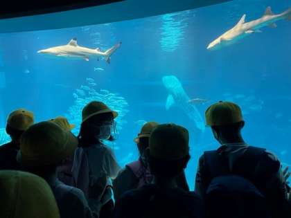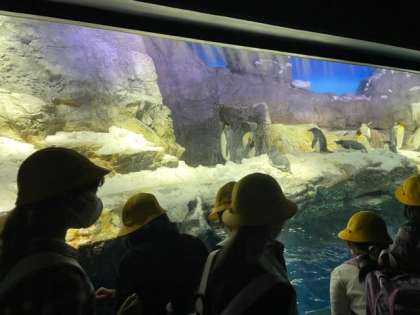 海遊館では、さまざまの海の生物を興味深く観察していました。