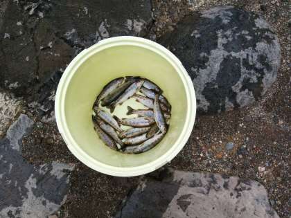 思っていたより水かさも少なく、何とか魚がつかめそうかな?