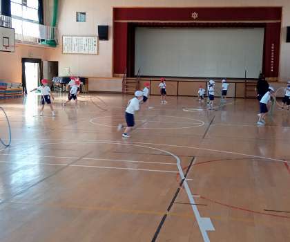 フラフープを使った運動をしました。とても楽しそうに活動しています。