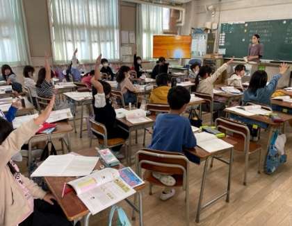 かけ算の問題をつくって、友だちに発表する学習をしました。問題作りのアドバイスもしていました。