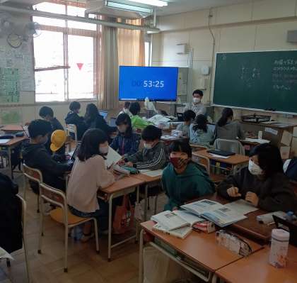 グループで「和の文化」について調べ、プレゼンテーションを行う準備をしています。