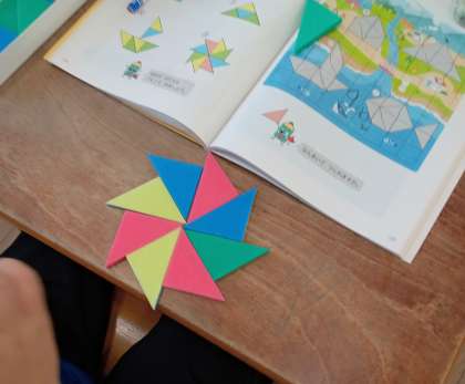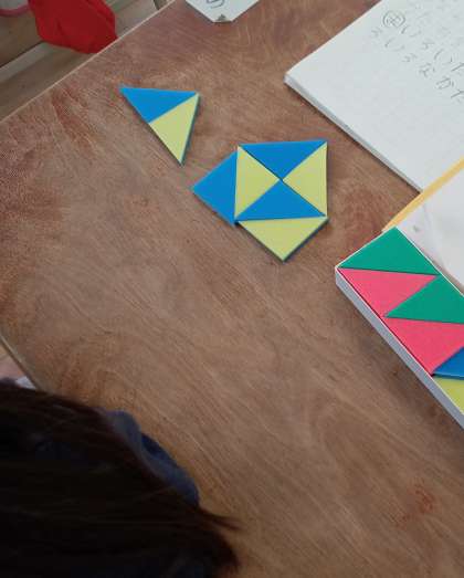 いろいたを並べて、さまざまな形を作りました。