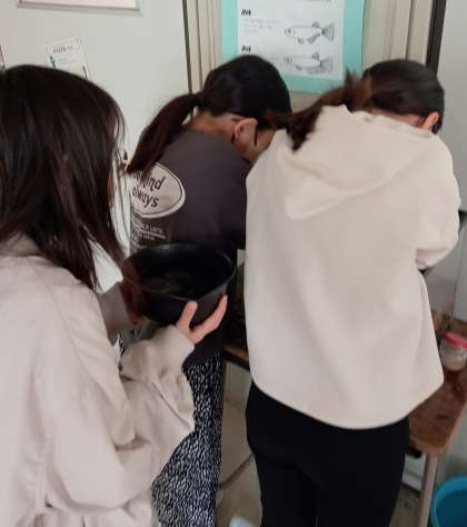 係の仕事を頑張っています。生き物係はメダカの世話をしていました。