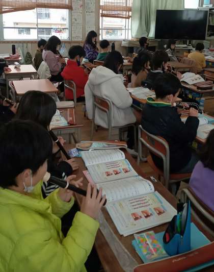 リコーダーで「オーラリー」の演奏をしています。二つのパートに分かれて合奏しました。