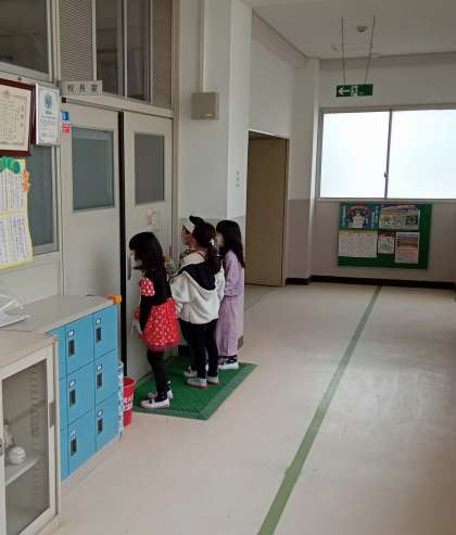 明日は瑞光第2幼稚園の子どもたちと交流します。幼稚園の友達に小学校を案内する練習をしています。