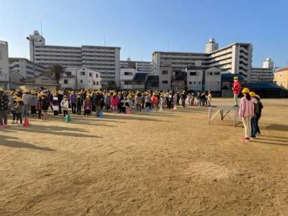 たてわり班で集合して、児童集会をしました。集会委員会の児童がクイズを出し、たてわり班で考えます。今日は、「日本人が一番よくたべるのは、牛肉である。まるかばつか?」など「肉」のクイズでした。楽しい児童集会ができました。