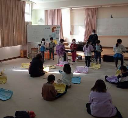 鉄琴と鍵盤ハーモニカで合奏をしています。