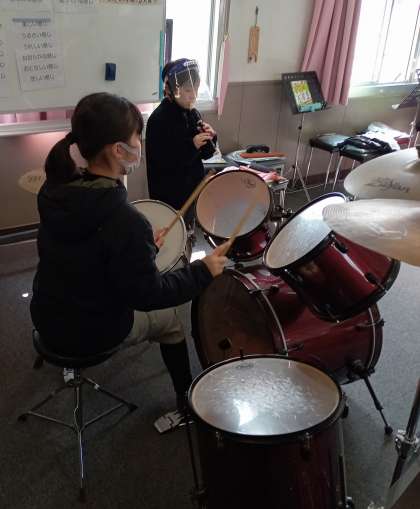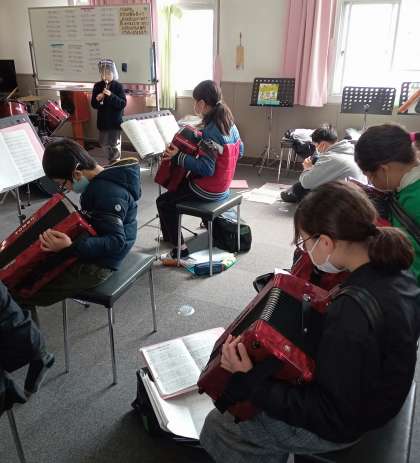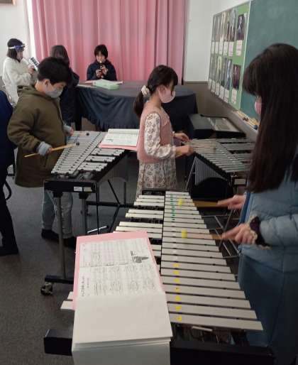 合奏の練習をしています。それぞれのパートに分かれて、一生懸命練習に取り組んでいました。