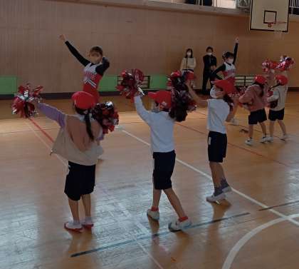 大阪経済大学のチアリーディングの学生に来ていただき、ダンス教室を実施しました。
