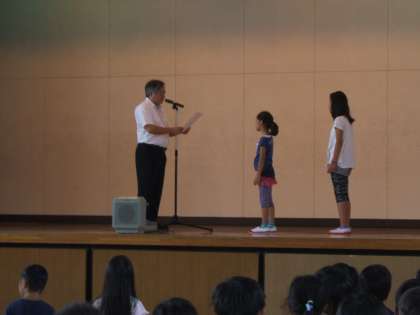 現在の2年生と6年生の2人が、表彰されました。