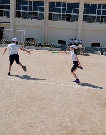 リレーのバトンパスの練習です。仲間を信じて、全力で走っています。