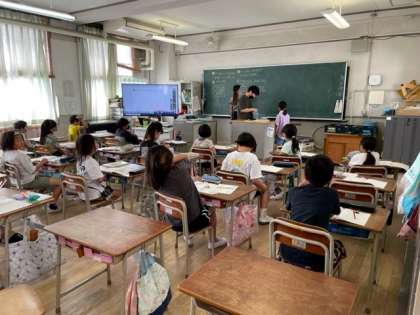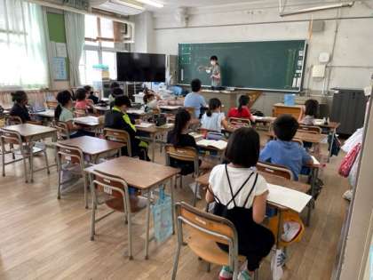 たし算の「十の位にくり上がりのあるひっ算のしかた」を考えました。見通しをもって、自分で考えて、みんなの前で考えを発表していました。