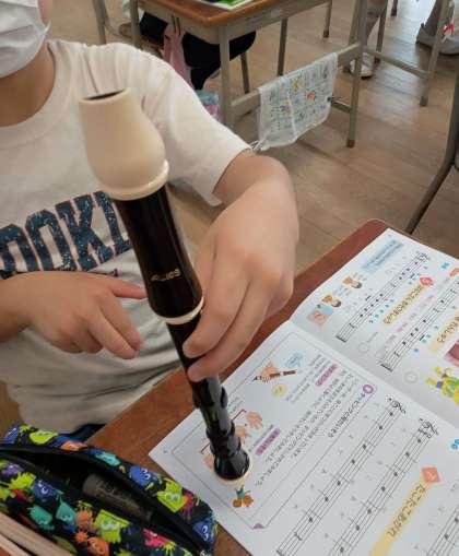 今日はリコーダーで「ラ」の音を出しました。