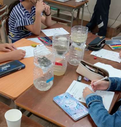 土の種類によって水のしみこみ方が違うことを実験で確かめました。