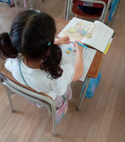 「とんこととん」を読んで、お話の流れをワークシートで確かめました。