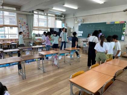 クラスで井高野フェスティバルの店番の練習をしました。