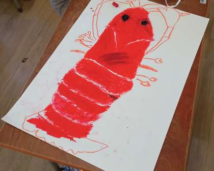 ザリガニの絵を描いています。パスで色を塗りこみ、完成に近づけていきます。