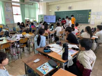 グループで発表する地方を決めて、「We went to〜」「We enjoyed 」などを使って、地方の特徴を考えて好きなところやみたいところなど英語で発表することができました。