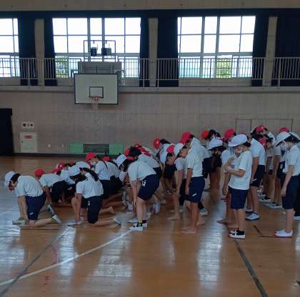 小学校最後の運動会に向けて練習に取り組んでいます。全員でいいものを作り上げようという気持ちが伝わってくる演技をしていました。