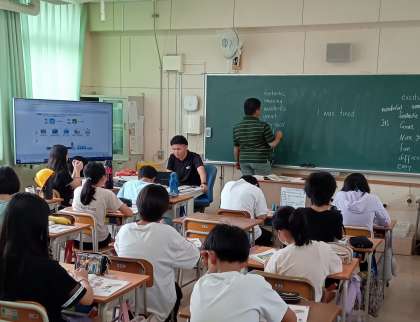 外国語の会話の音声を聞いて、聞き取れたことを話し合いました。