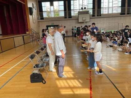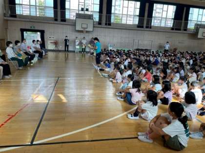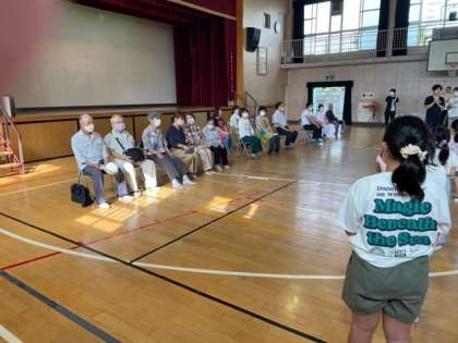 日ごろお世話になっている、老人会の皆さん、あおむしの皆さん、給食料理員の皆さん、園芸などにお世話になっている方に来ていただき、感謝の手紙を渡し、歌を披露しました。
