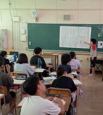 「海の命」の学習です。山場の場面はどこから始まるのか、子どもたち同士の話し合いが活発に行われました。