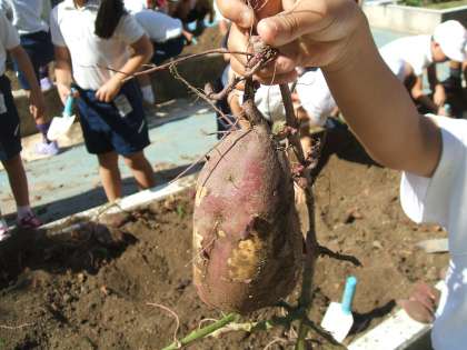 すっごく大きなさつまいもの収穫に、びっくりしていました。