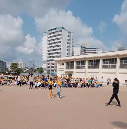 地震が起こったことを想定して、全校で避難訓練を行いました。