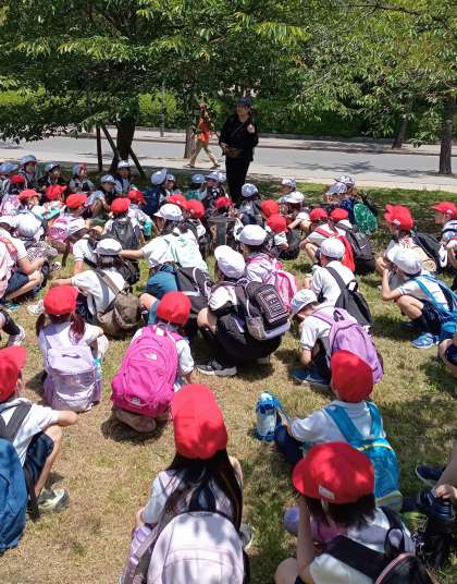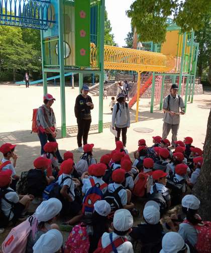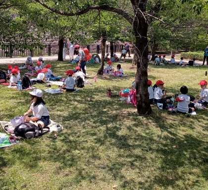 1,2年生が遠足で大阪城公園に来ています。天気に恵まれ、楽しい遠足になりました。大きな遊具で遊んだり、みんなでお弁当を食べたりしました。