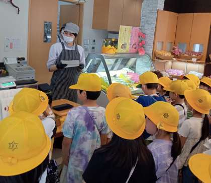 町たんけんに出かけました。井高野地域にある駅や幼稚園、ケーキ屋さん、福祉会館に行って、インタビューをしてきました。