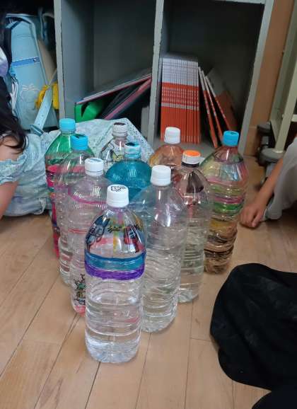 明後日の井高野フェスティバルに向けての準備です。この学級ではボウリングをします。