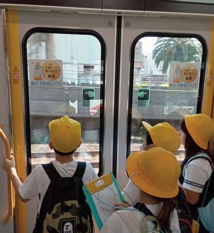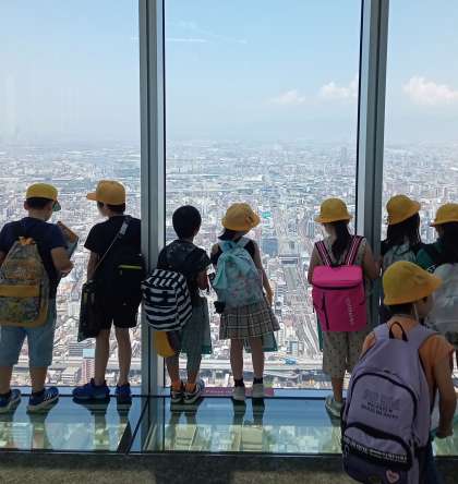 3年生が社会見学であべのハルカスへ行きました。高さ300mの展望台から大阪のまちを見渡しました。その後は、JR大阪環状線に乗り、電車から大阪のまちの様子を見学しました。