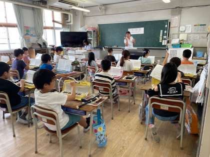 専科の先生と一緒に音楽の学習をしました。鍵盤ハーモニカの練習をしました。