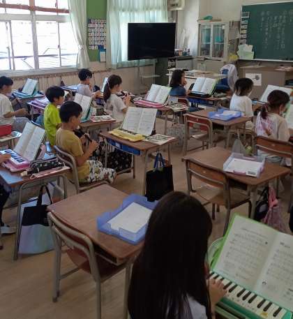 リコーダーと鍵盤ハーモニカで合奏をしました。