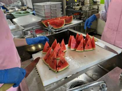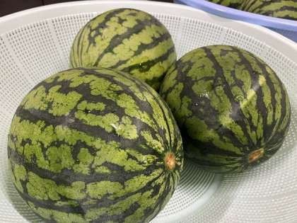 今日は6玉の大きなすいかが届きました。1/64に切り分けます。