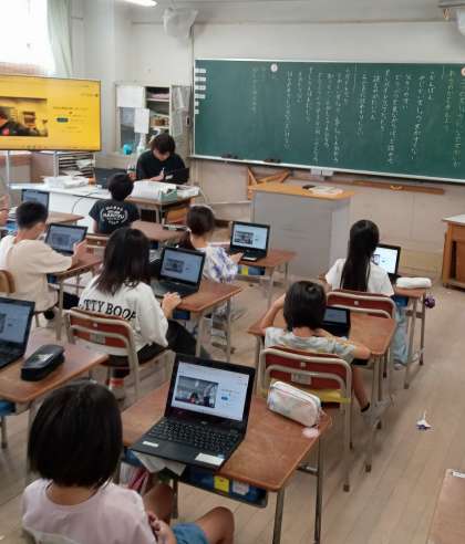 一人一台パソコンでグーグルクラスルームの使い方を学習しました。離れた場所にいてもオンラインでつながることでコミュニケーションが取れるようになります。