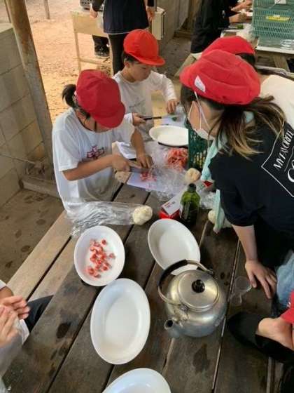 ピザ作り2 ピザの上に乗せる食材の用意をしています。