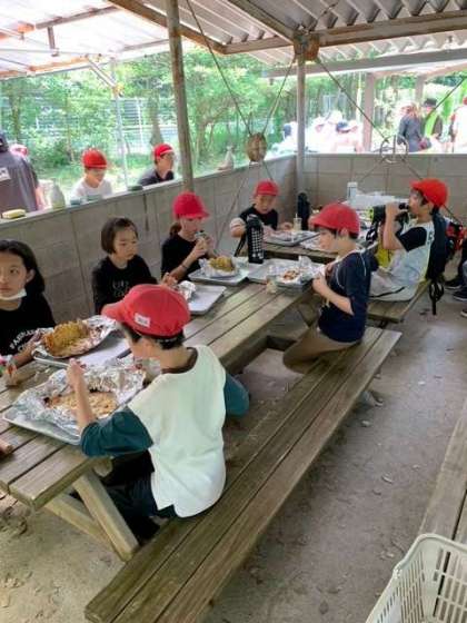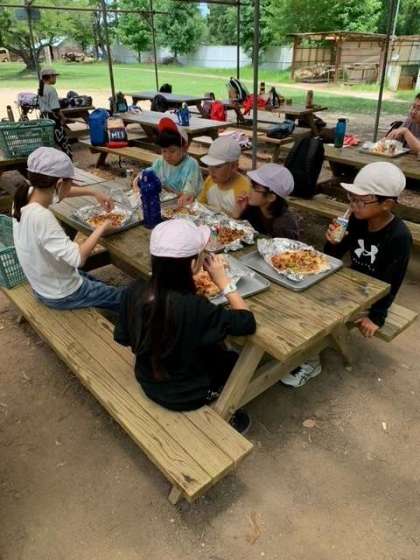 ピザ作り5 出来上がったピザをみんなでいただきました。