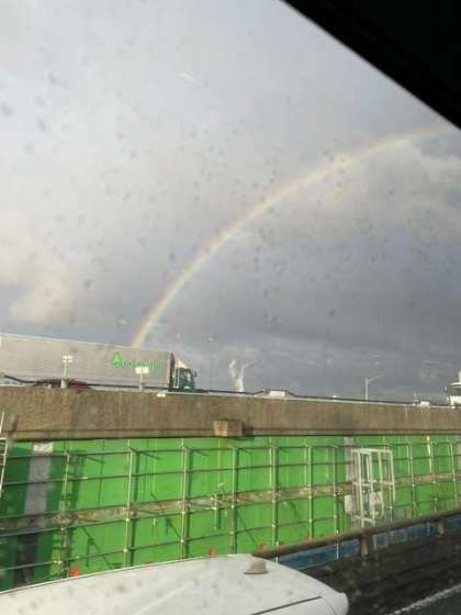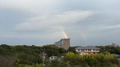 昨日、大阪で高速道路から虹が出ましたが、本日宿舎からも虹が見られました。今日の天候は良さそうです。