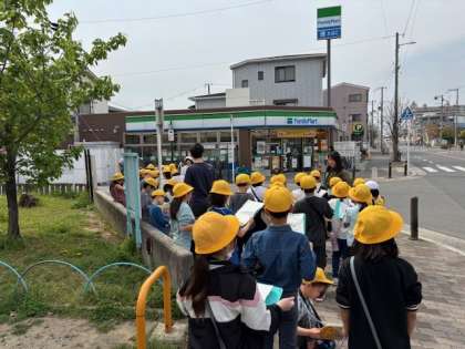 地域を歩き、地域に住む人が利用する施設や買い物をするお店などを調べ、これからの生活に生かすことを目的として校区探検をしました。