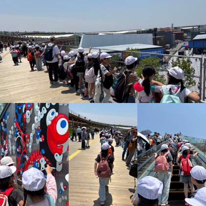 子どもたちは、上からの眺めを楽しめている様子で、下に向かって「ヤッホー」と叫んでいます。