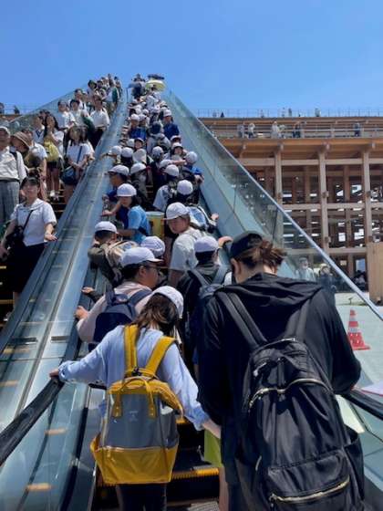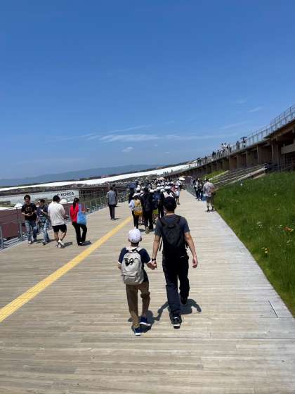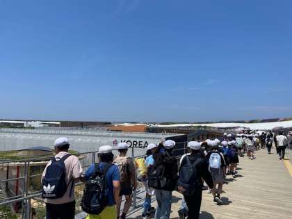 大屋根リングに上がり、会場の様子を上から眺めました。