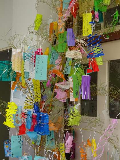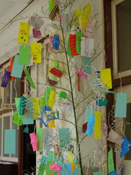 7日の七夕に向けて、1年生は短冊に願いを書いて飾りました。がんばりたいことや将来の夢、家族のこと、などなど。どうか、子どもたちの思いが実現しますように。